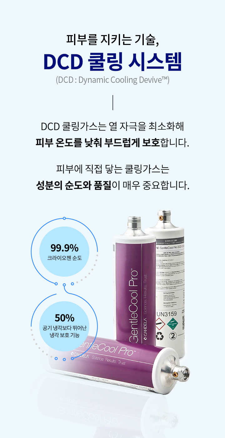 DCD 쿨링가스는 열 자극을 최소화해 피부 온도를 낮춰 부드럽게 보호합니다.