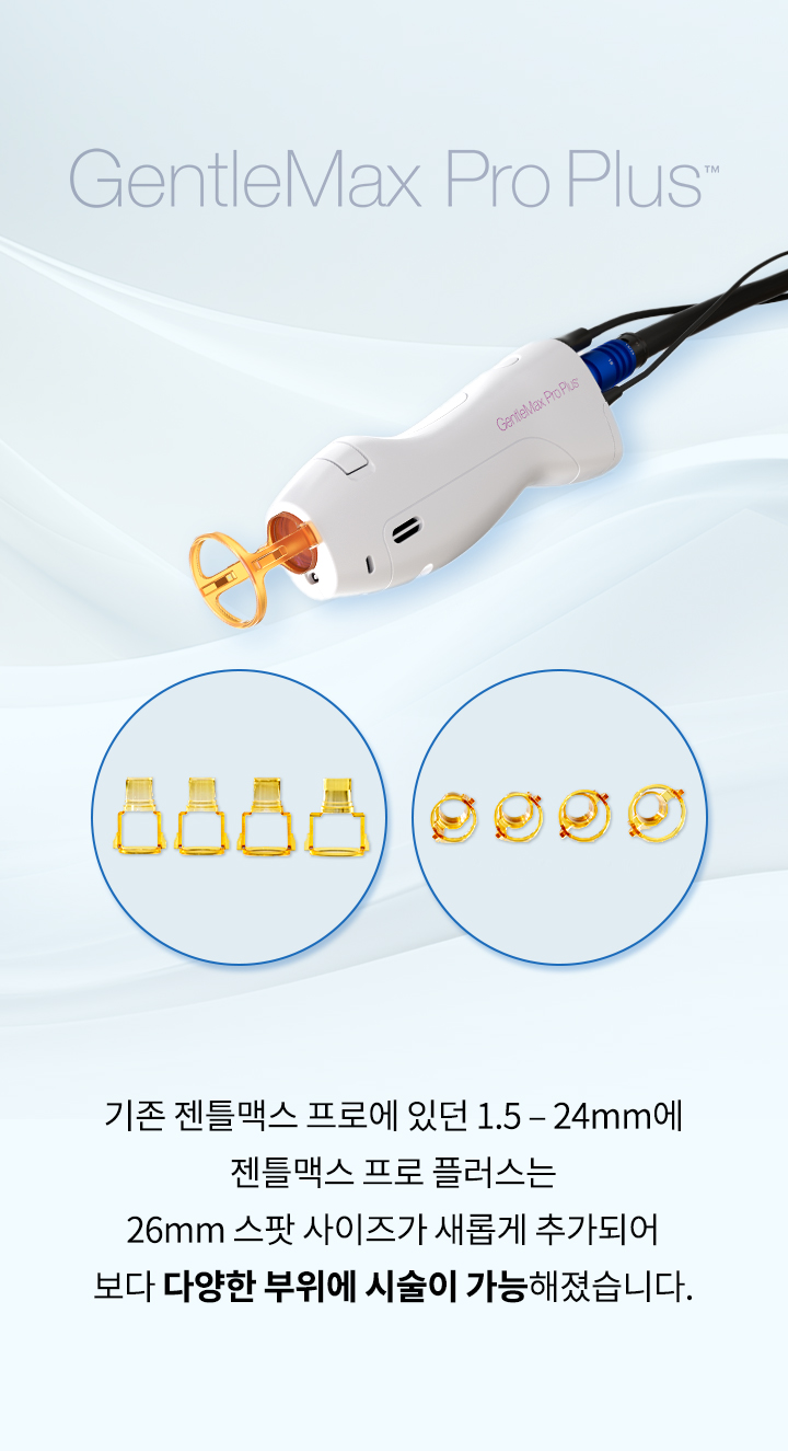 기존 젠틀맥스 프로에 있던 1.5 – 24mm에 젠틀맥스 프로 플러스는 26mm 스팟 사이즈가 새롭게 추가되어 보다 다양한 부위에 시술이 가능해졌습니다.